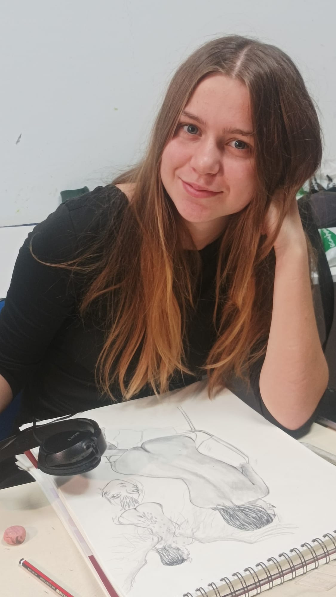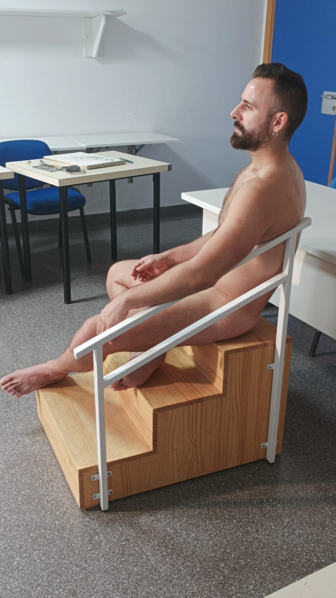 Generalmente, 3 poses de unos 50 minutos, con descansos. Puede dibujarse cada pose desde un mismo lugar o tomar apuntes rápidos, cambiando el enfoque. En las fotos que siguen, se ve a Marta. Nos posan otras chicas y chicos.