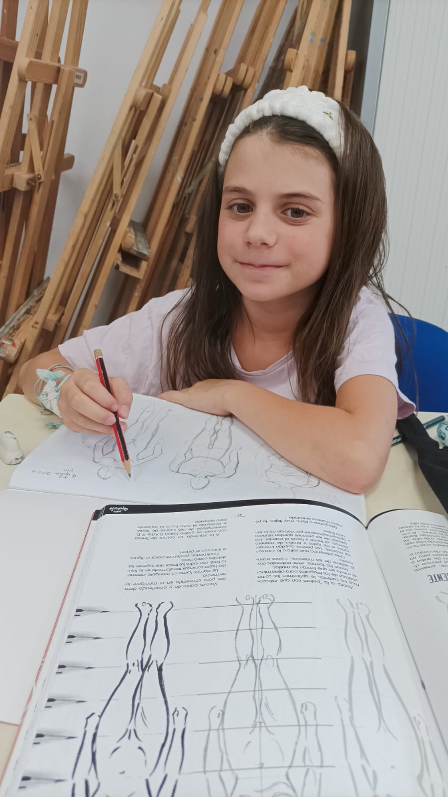 Los alumnos dibujan en clase y también en casa, gracias a que en los libros tienen todas las explicaciones y el proceso desmenuzado para culminar con éxito cada dibujo.