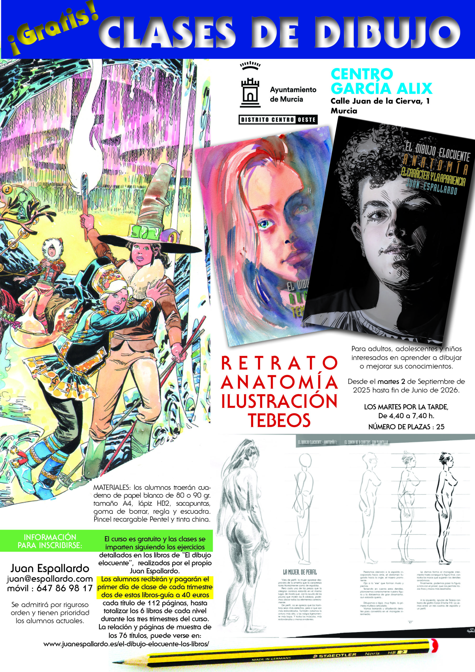 Los alumnos se inician con el primer libro de Anatomía «El canon de 8 cabezas, con plantilla» y el primero de Perspectiva «La dimensión del Universo». Y van completando su formación en el orden establecido para el Curso de «El dibujo elocuente». Si alguien se considera con conocimientos suficientes, puede ir escogiendo los títulos de las materias que quiere perfeccionar.